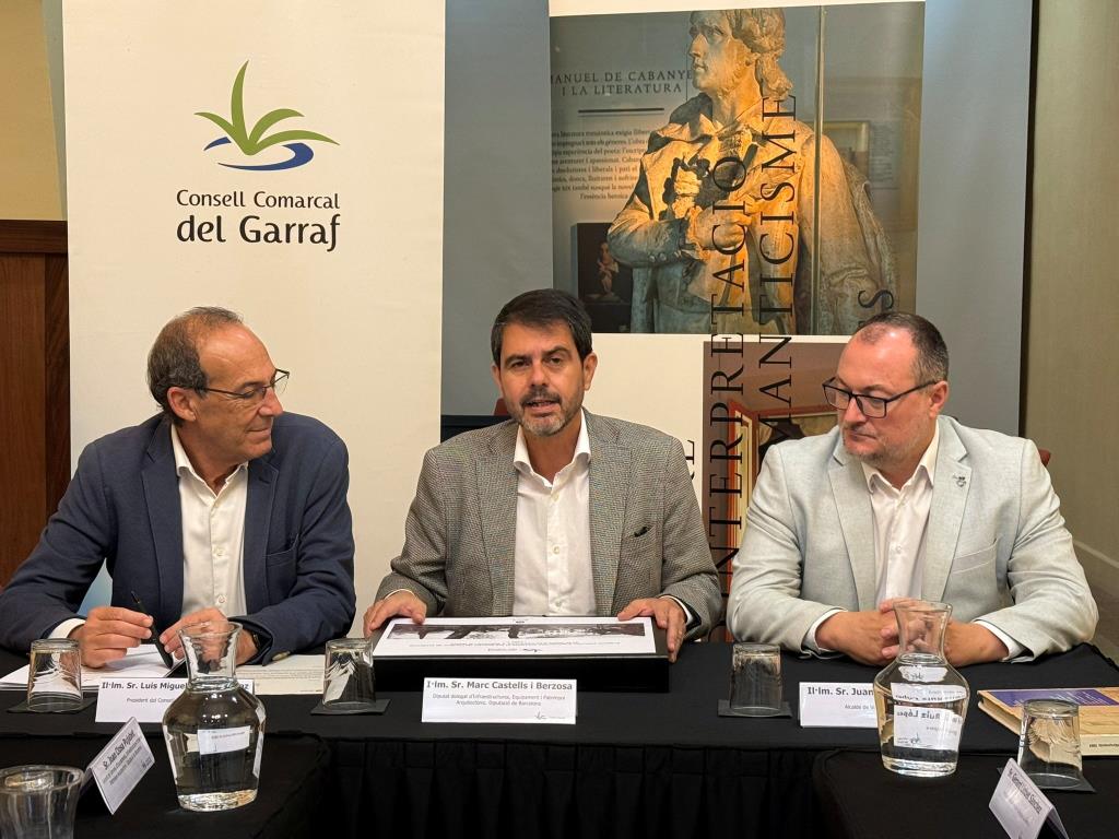 El vicepresident quart i diputat d’Infraestructures, Equipament i Patrimoni Arquitectònic de la Diputació de Barcelona, Marc Castells, ha lliurat aquest dimarts al Consell Comarcal del Garraf i a l’Ajuntament de Vilanova i la Geltrú el projecte executiu d’actuacions previstes al Pla director de l’entorn de protecció de la Masia d’en Cabanyes. L’acte ha comptat amb la presència de l’alcalde Juan Luis Ruiz, el president del Consell Comarcal, Luis Miguel García, i altres autoritats locals.