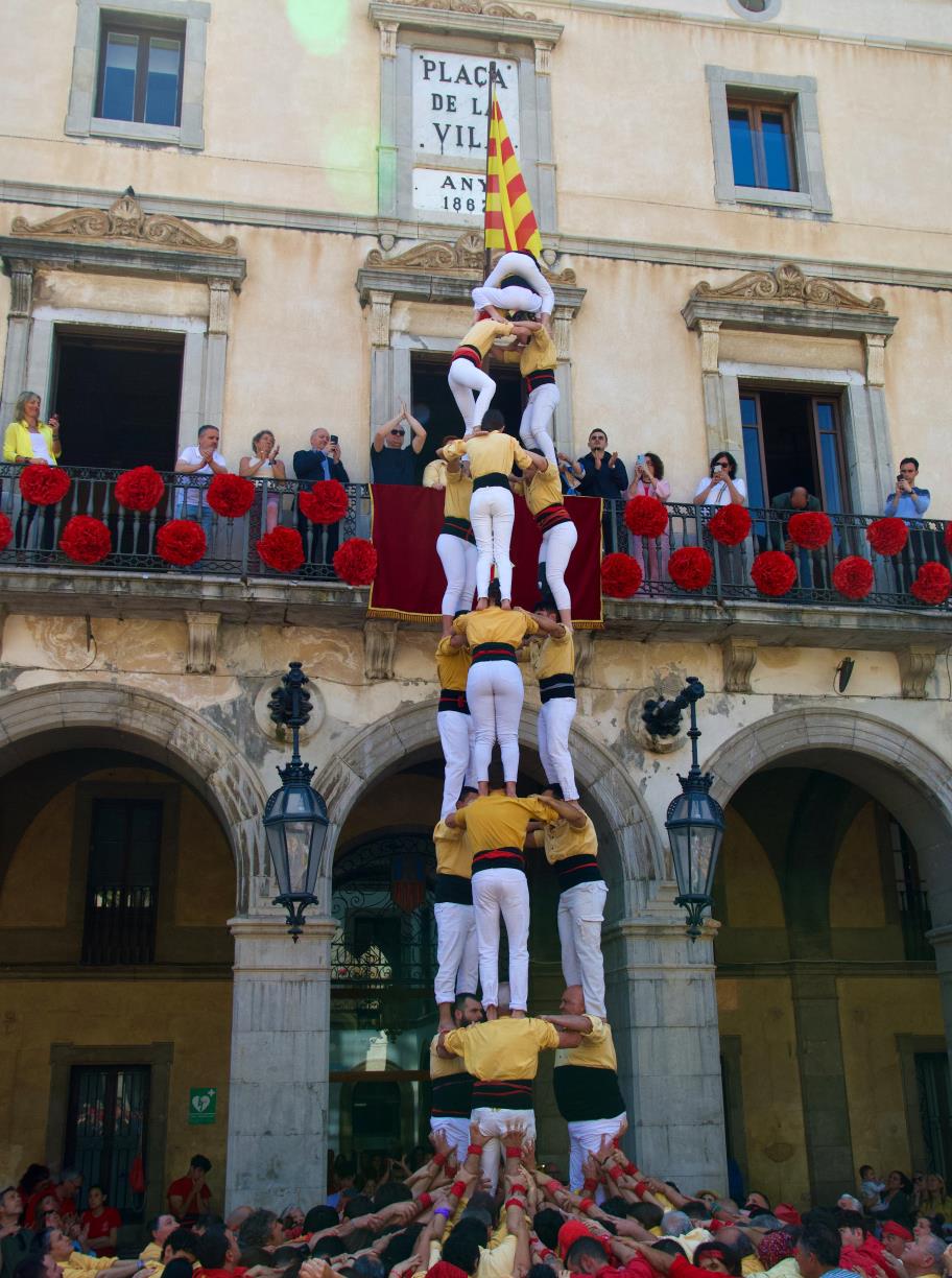 A la plaça de la vila també hi van actuar els Xicots de Vilafranca, els Castellers de Barcelona i la Colla Joves dels Xiquets de Valls, totes tres, de vermell.