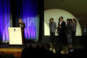 L'actor Patrick Wilson durant el seu discurs després de rebre el Premi Màquina del Temps en la gala inaugural del 52è Festival de cinema de Sitges. AC