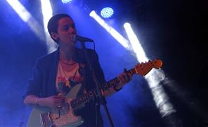 Imatge a peu d'escenari dels Manel el 6 de desembre de 2019 al Secret Vida. ACN