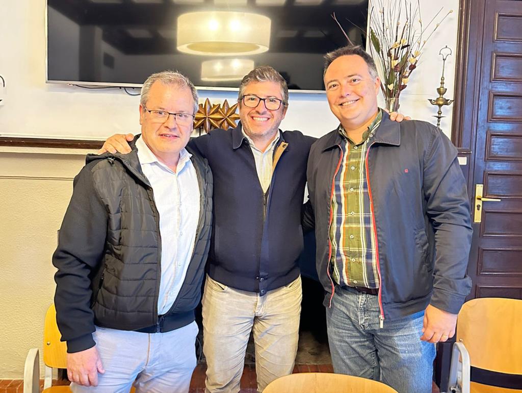 El president de Club Patí Calafell Javier Luna i el del Club Esportiu Noia Josep Maria Ribas amb Javier Ornia, Gerent del Campus Camp Joliu.