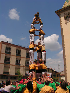 Els de Marcos Montes van sortir de tres de set. Aquest tres va servir perquè debutessin dos nous castellers de tronc. Duna banda, Nerea Soto, que anava a la buida del pis de quarts, va fer el seu primer castell a plaça. De laltra, Pepe Martí va debutar com a segon. El tres va pujar molt segur en tot moment i els debutants van demostrar que estan plenament capacitats per tenir protagonisme als troncs bordegassos. A segona ronda el repte va ser més important; tot i les nombroses baixes que hi havia, la tècnica va apostar per dur a plaça el quatre de set amb lagulla. Per fer aquest castell molts membres de la pinya van haver de debutar en les seves posicions. Però la casta va ser suficient per descarregar un castell que és un valor segur per als Bordegassos. La darrera vagada que els va caure va ser el 13 octubre del 2002 a Gavà, quan només el van carregar. Daixò ja fa més de tres anys i mig. Des de llavors tots els han descarregat i ni tan sols hi ha hagut intents desmuntats. El castell no va perillar en cap moment tot i que el quatre va perdre les mides ideals. Els vilanovins van cloure les rondes de castells amb un quatre de set en què va debutar com a aixecadora la Laura. El castell va ser de consecució lenta, però no va passar per cap dificultat. La diada, que shavia iniciat amb un pilar de quatre de salutació, es va cloure amb un altre pilar, en aquest cas de cinc.