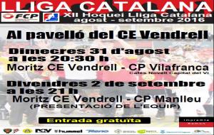 Divendres 2 de setembre, a les 21 h, Lliga Catalana: Moritz CE Vendrell – CP Manlleu, dia que es farà la presentació de l’equip davant de l'afició).