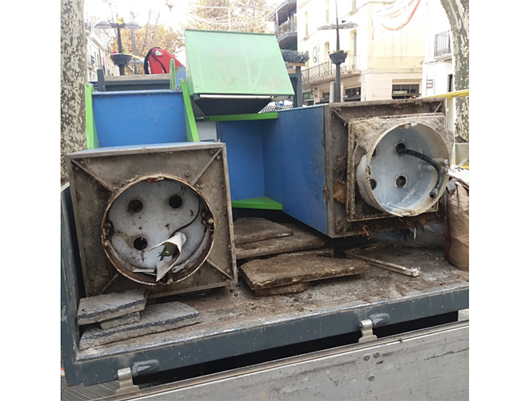 Tanta activitat que tenien i generaven i han acabat oblidades i fent-se malbé, sense cap mena de manteniment convertint-se en pixador de gossos, en impediments al mig de la via pública quan no en objectius dels vàndals habituals, en una clara manifestació de la degradació de la via pública. Llàstima de final. Havien de sortir damunt una catifa vermella i han acabat amuntegades de qualsevol manera a la caixa d’un camió.