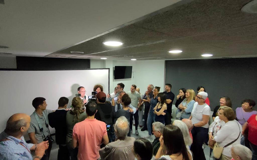 Juan Luis Ruiz atenent als mitjans la nit electoral. Eix