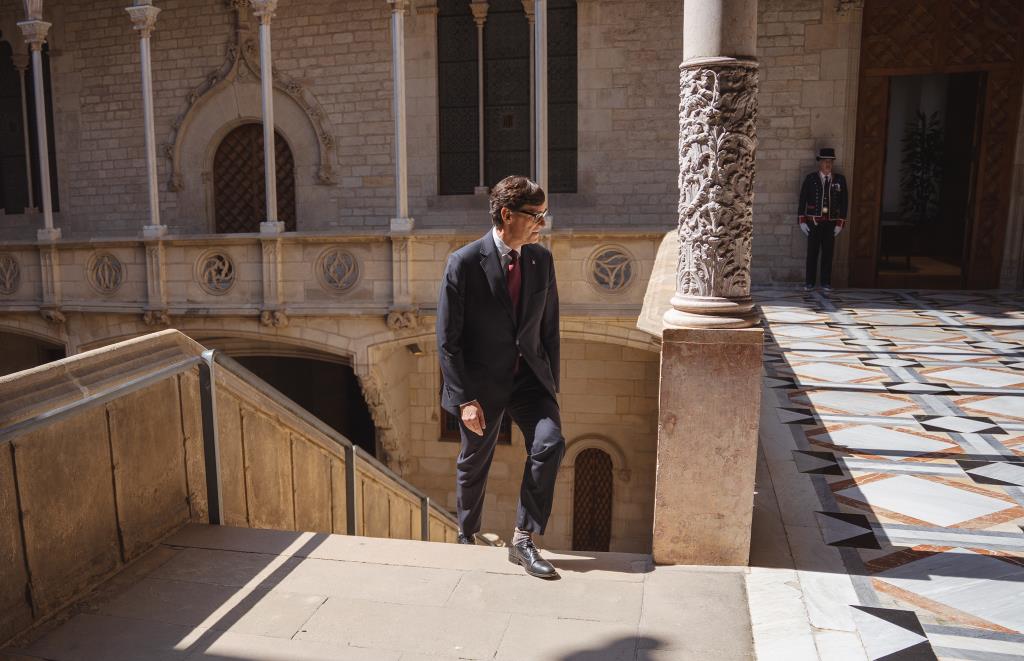 Salvador Illa arriba a la Galeria Gòtica del Palau de la Generalitat . ACN / Marc Font