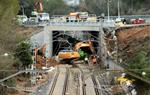 Maquinària treballant al punt on es va accidentar un tren a Gelida. ACN / Mar Martí