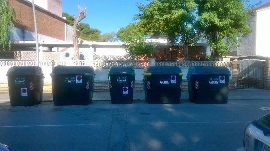 Contenidors davant del local de l'Associació de Propietaris de Coma-ruga. A. Propietaris Coma-ruga