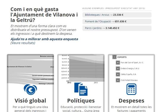 A banda del dret a la informació, l'Ajuntament de Vilanova i la Geltrú treballa també per millorar el seu nivell de transparència, adoptant un paper actiu a l'hora de donar informació, l'exigeixi o no la ciutadania. En aquest sentit, i dins la política de transparència municipal, s'han publicat a la web de l'Ajuntament una sèrie de dades i s'ha fet un esforç des de diferents regidories per adaptar-se a la Llei i donar-li compliment. A l'espai de transparència del web, es pot trobar informació sobre transparència, pressupost i altres dades obertes.