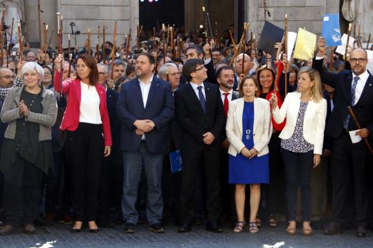 Puigdemont també ha volgut aprofitar per “agrair” als alcaldes ara investigats “la resposta immediata a la crida del Govern” a col·laborar amb l’1-O. “No us vau deixar arronsar per les primeres amenaces, sabent que en vindrien de noves, no us han tremolat les cames amb la citació de la Fiscalia. I arribem a l’1 d’octubre com el que volem ser, una democràcia, un país lliure on la gent es pugui expressar amb normalitat”, ha sentenciat.