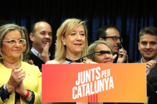 L'alcaldessa de Vilanova i la Geltrú i presidenta de l'AMI, Neus Lloveras, durant l'acte de JxCat a La Garriga per la campanya electoral del 21-D. ACN