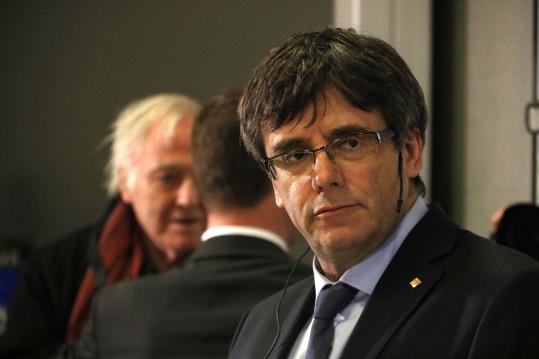 Primer pla de Carles Puigdemont, al debat sobre Catalunya de la Universitat de Copenhaguen, el 22 de gener de 2018. ACN
