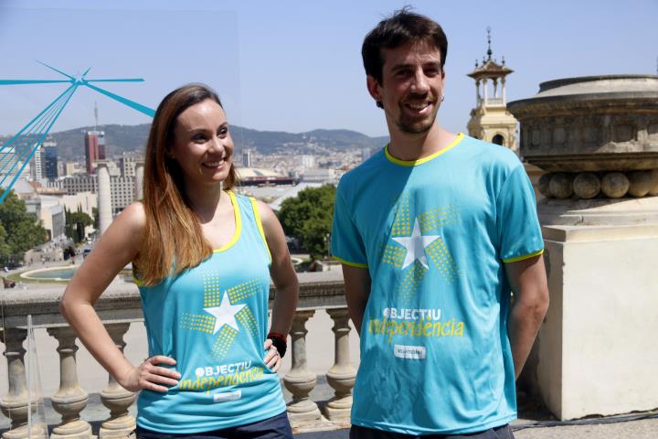 Dos joves mostren la samarreta de l'ANC en motiu de la manifestació de l'Onze de Setembre de 2019. ACN