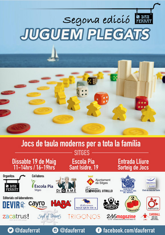 Es tracta de la segona edició de “Juguem Plegats” que organitza l’Associació Dau Ferrat, que ja té una seixantena de socis. Enguany compta amb el recolzament de diverses editorials que han donat jocs per poder fer demostracions durant la jornada lúdica i la col·laboració de l’Escola Pia Sitges, la botiga especialitzada en jocs “Dr. Game” i el suport de l’Ajuntament de Sitges.