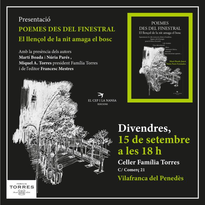 Referent en l’àmbit de l’educació ambiental i prestigiós expert que forma part del Programa de les Nacions Unides per al Medi Ambient, ara s’endinsa en el llenguatge poètic a Poemes des del finestral. El llençol de la nit amaga el bosc. Anteriorment ha publicat Poesia Forestal (2021) també amb El Cep i la Nansa Edicions.