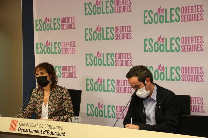 Pla general de la secretària general d'Educació, Núria Cuenca, i el secretari de Salut, Marc Ramentol. ACN