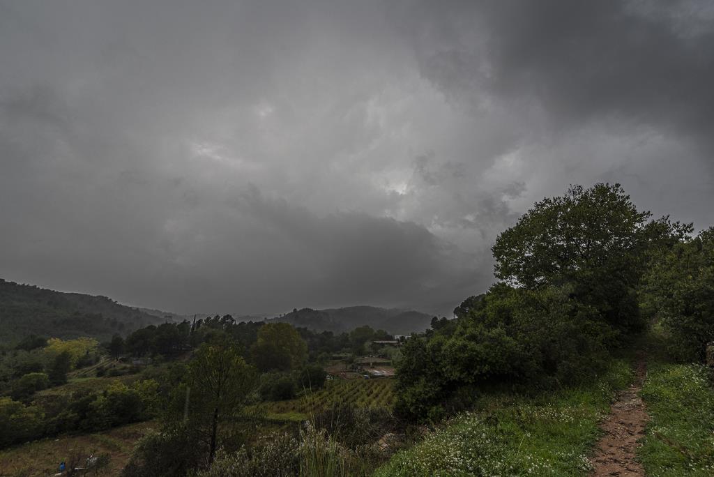 Nova nuvolada amb tempesta acostant-se per ponent, a Sant Quintí de Mediona, després de la tempesta s'ha deixat veure una mica el sol. Xavi Navas