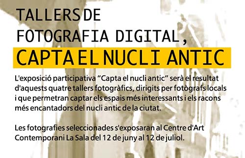 Els tallers es desenvoluparan durant quatre dissabtes al matí, del mes d’abril i maig, al Centre d’Art Contemporani La Sala i pels carrers del Nucli Antic.