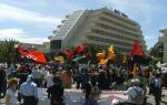 La manifestació arribà fins les portes d'un hotel Melià custodiat per 5 furgonetes de la Brigada Mòbil dels Mossos d'Esquadra
