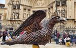 La història de l’àliga de Sant Julià comença el 2002, quan l’Ajuntament de Vilafranca va encarregar a l’escultora local Dolors Sans una àliga nova per substituir la vella de 1926