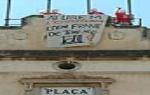 Tres joves es van encadenar divendres al migdia al terrat de l'Ajuntament per reclamar l'absolució de Francesc Argemí, un veí de Terrassa condemnat a dos anys i mig de presó pels delictes d'ultratge a la bandera espanyola, desordres públics i atemptat contra l'autoritat.