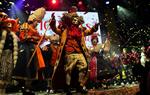 L’acompanyen quatre grups de Déus que conformen el seu seguici carnavaler, disposats a visibilitzar, des de l’humor i la burla, les preocupacions que assolen el poblat