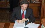 Lalcalde de Sant Pere de Ribes, Josep Antoni Blanco, i el director general de la Policia del Departament dInterior, Relacions Institucionals i Participació de la Generalitat de Catalunya, Rafael Olmos, van signar el passat dijous, 10 de gener, a la Casa de la Vila un conveni de col·laboració sobre les connexions al sistema dinformació policial entre la direcció general de la policia i lajuntament.