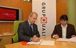 GRUPQUALITAT signa amb la Federació dIndústries de la Construcció i de la fusta de les CCOO de Catalunya i UGT, sengles convenis per a potenciar la seguretat i la salut dels treballadors de la construcció