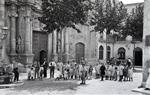 Mostra una part de la façana de l’església de Sant Salvador per recordar que fa 190 anys es va acordar obrir una nova porta a l’església, a la capella de les Ànimes
