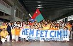Unes cent persones es van desplaçar aquest dissabte a l'aeroport del Prat de Llobregat per rebre amb tots els honors als membres de l'expedició Vilanova 8000 que fa uns dies van assolir el cim del Cho Oyu.