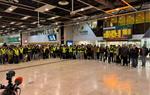 Les pantalles estan en negre, hi ha més informadors de l'habitual i megafonia informa que el servei està suspès