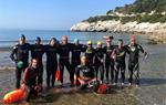 Espectacular entrenament d'aigües obertes amb els nois i noies del Club Natació Sitges, nedant el tram des de Vallcarca fins Sitges (platja de La Marina d'Aiguadolç) un total de 3400 metres amb aigües cristal·lines