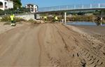 S’han obert canals a la sorra de la platja per desaiguar l’acumulació d’aigua en els carrers de la zona Brisamar