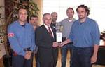 Lequip masculí dhandbol dels Bombers de la Generalitat ha ofert aquest matí al director general de Prevenció, Extinció dIncendis i Salvaments, Jordi Gassió, el trofeu amb què la Federació Catalana daquest esport ha fet un reconeixement especial als guanyadors de lor en els últims Jocs Mundials de Policies i Bombers.