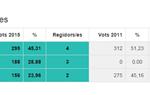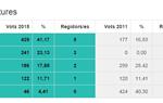 CiU passa de 5 a 3 regidors, amb el 25% dels vots, i ERC entra de nou a l'Ajuntament amb 2 regidores i el 21%