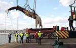 Els tècnics del Centres de Recuperació d'Animals Marins i Salvament Marítim han pogut rescatar finalment aquest dilluns el cadàver d'una balena que va arribar a les costes de Vilanova fa una setmana.