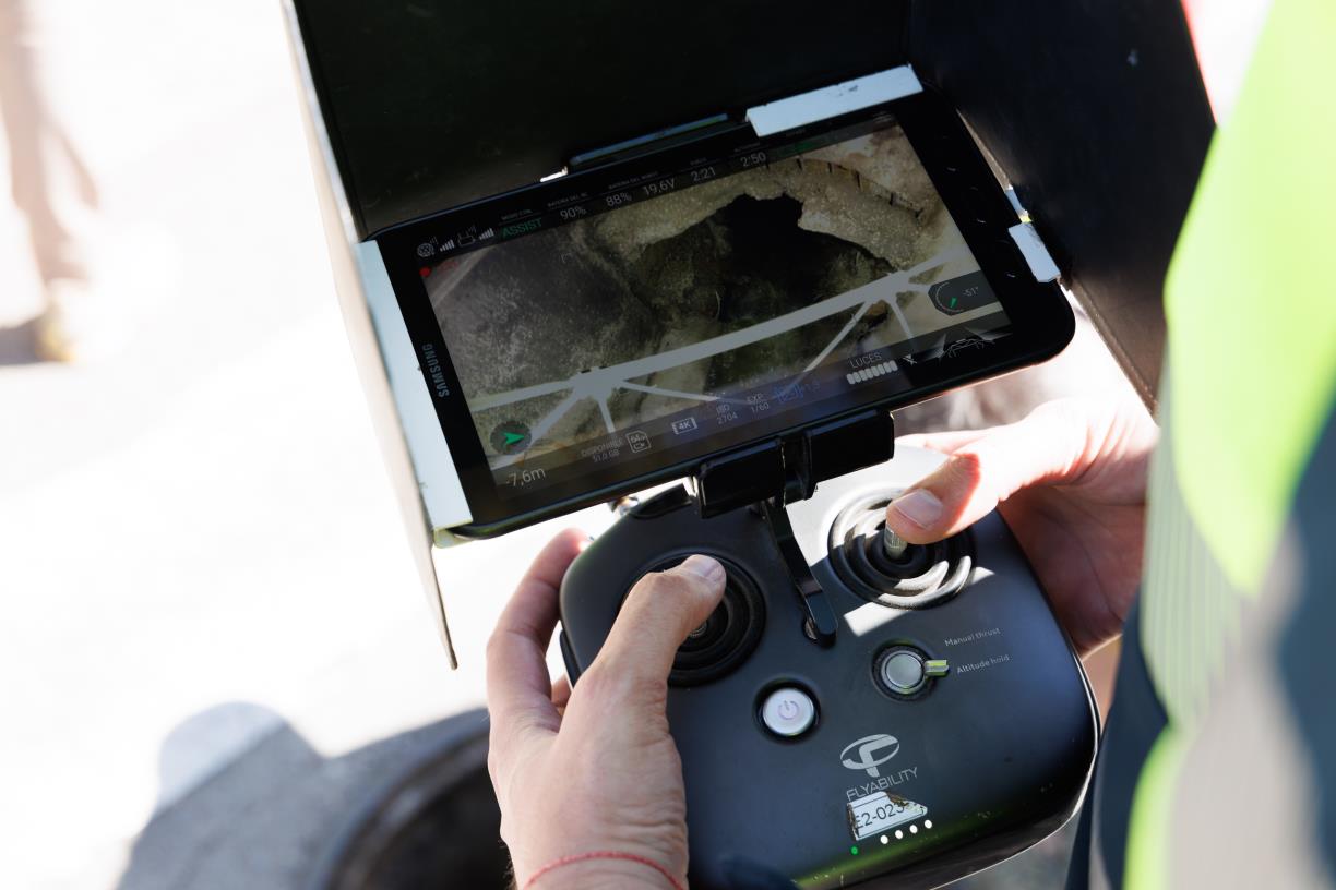 Comandament d'un equip d'inspecció de sanejament amb dron